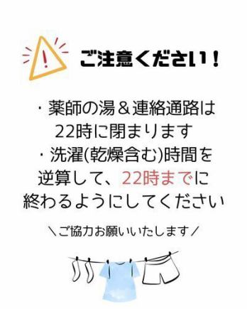 ※薬師の湯は22時閉館です。それまでに洗濯・乾燥が終了するよう、時間をみてご利用くださいませ。