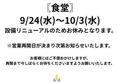 【薬師の湯 食堂】営業休止のお知らせ